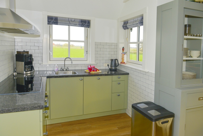 In de keuken vindt u een Smeg Koelkast, inductie kookplaat met 5 kookzones, vaatwasser, oven, waterkoker en koffiemachine en verder een complete keukeninrichting.