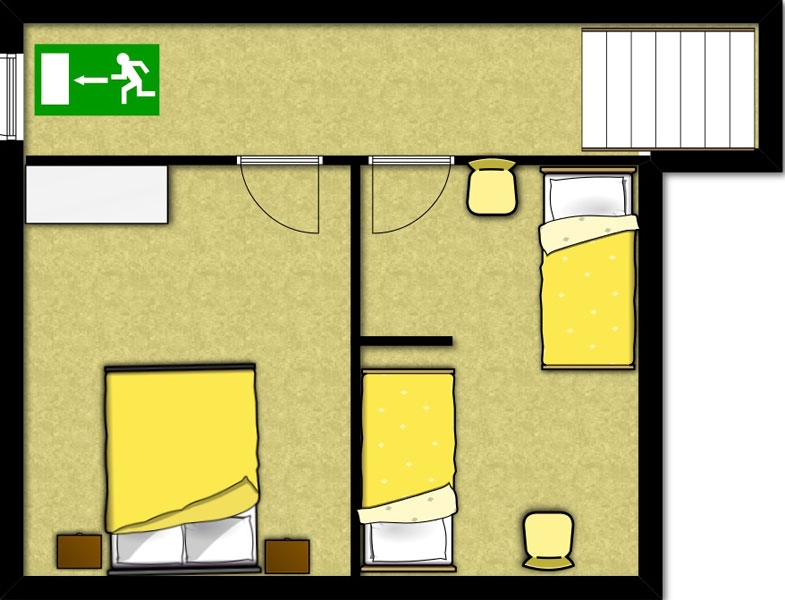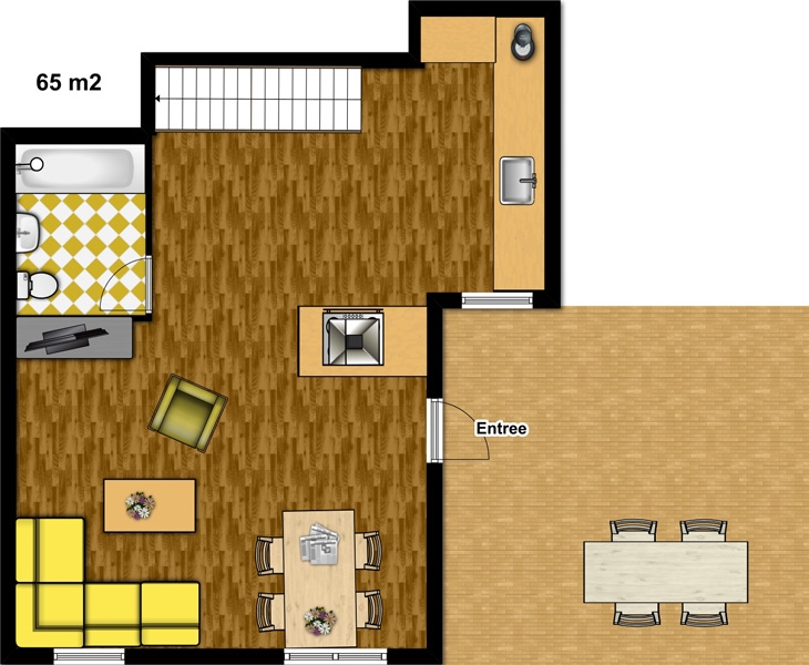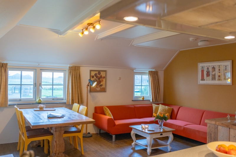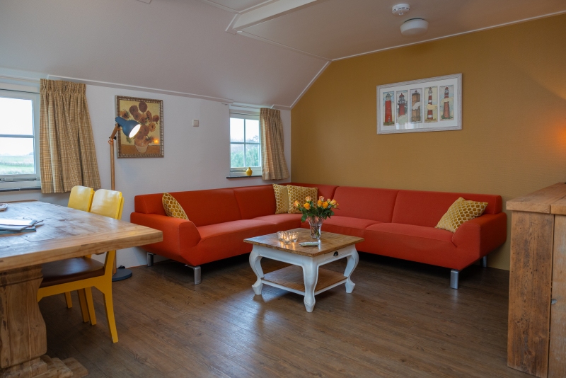 Het gele appartement is licht en sfeervol. Het is uitstekend geschikt voor 4 personen.