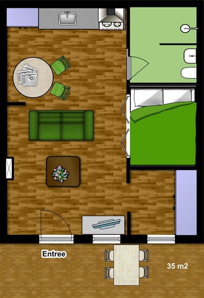 Dit appartement is geschikt voor 2 personen. Een kinderbedje kan worden bijgeplaatst.