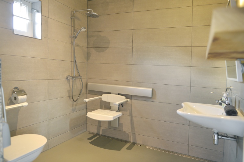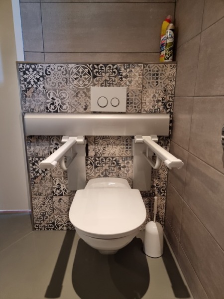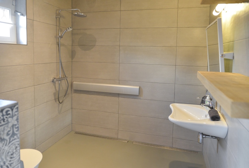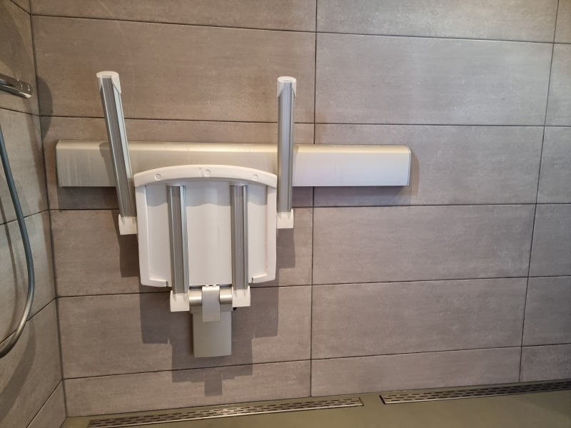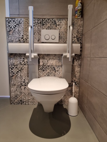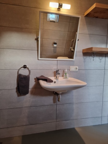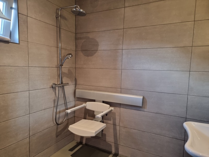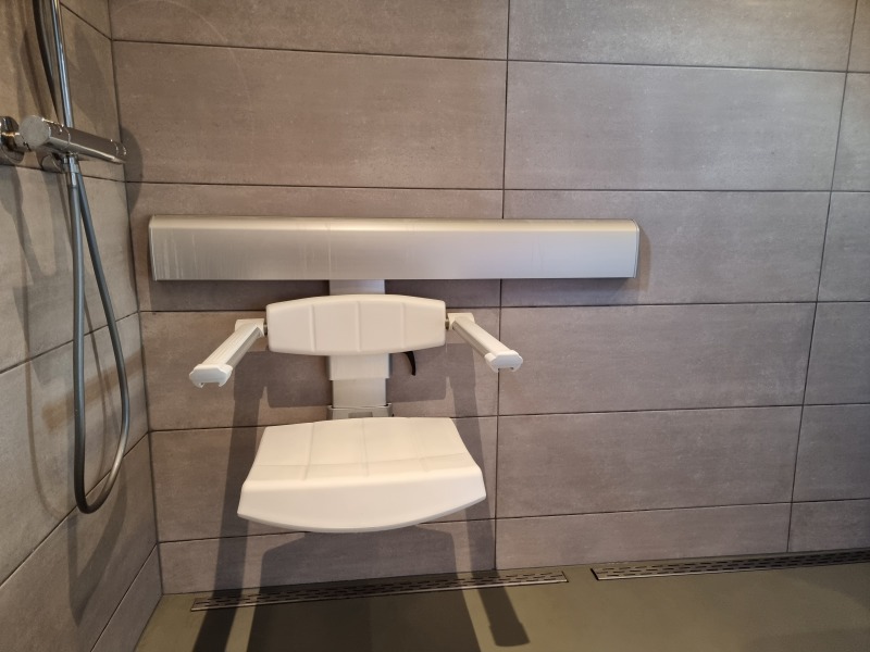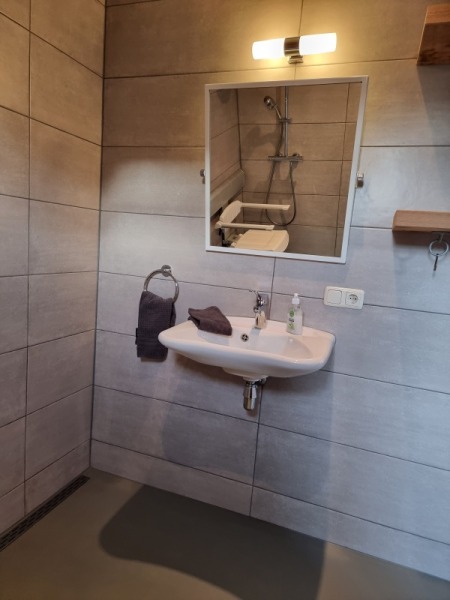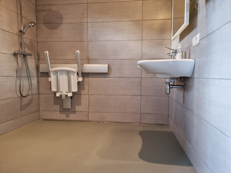 De badkamer is voorzien van een antislipvloer. In de badkamer is de wastafel onderrijdbaar en door middel van een wandrail is een douchestoel en toiletbeugels makkelijk te plaatsen. Heeft u speciale wensen zoals bijvoorbeeld een tillift of Sta op stoel neemt u dan (tijdig) contact op met Thuiszorg Texel. Zij zijn op werkdagen telefonisch bereikbaar tussen 13.00 en 14.00 uur via 0222-314887 of via E-mail thuiszorgwinkeltexel@omring.nl