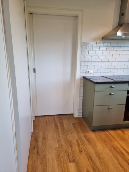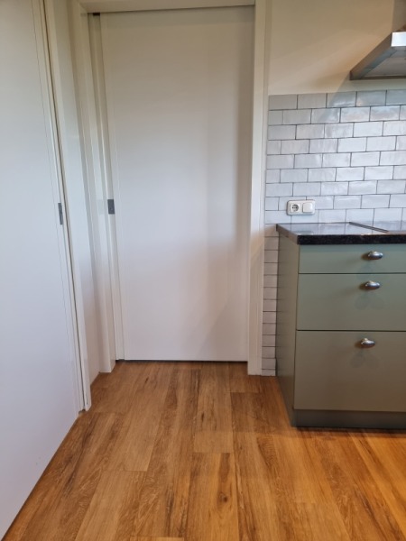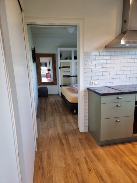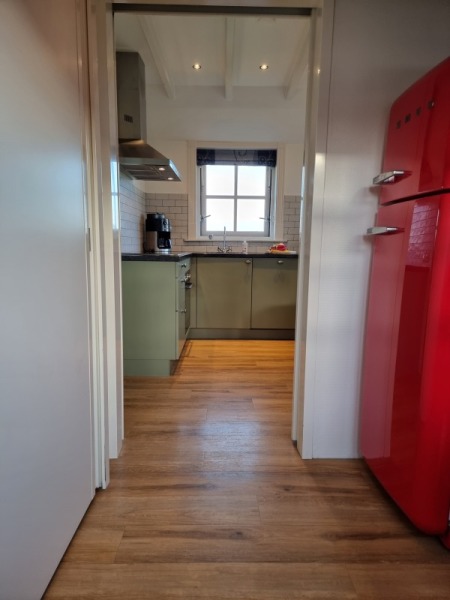 Er is een volledig ingerichtte keuken. Het keukenblad is niet onderrijdbaar. Wel hebben we zoveel als mogelijk schuiflades i.p.v. onderkastjes geplaatst. In de keuken vindt u een vaatwasser, oven, waterkoker en luxe koffiemachine (koffiebonen worden vers gemalen) koken doet u op een inductiekookplaat.